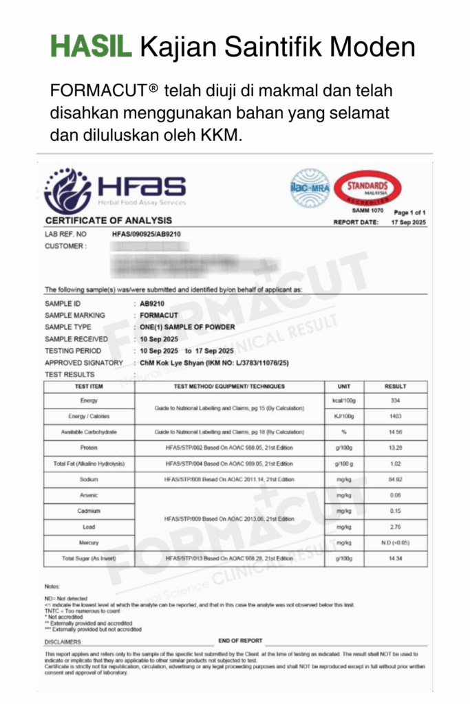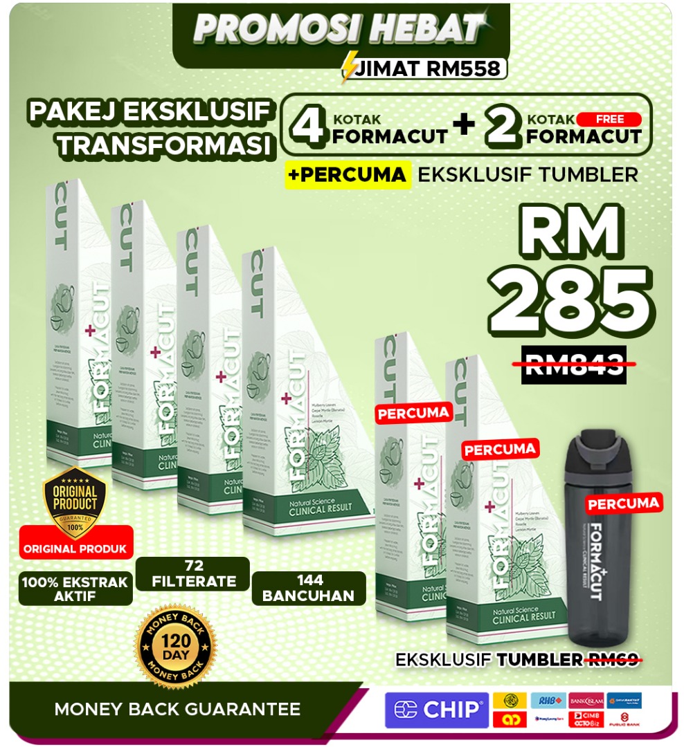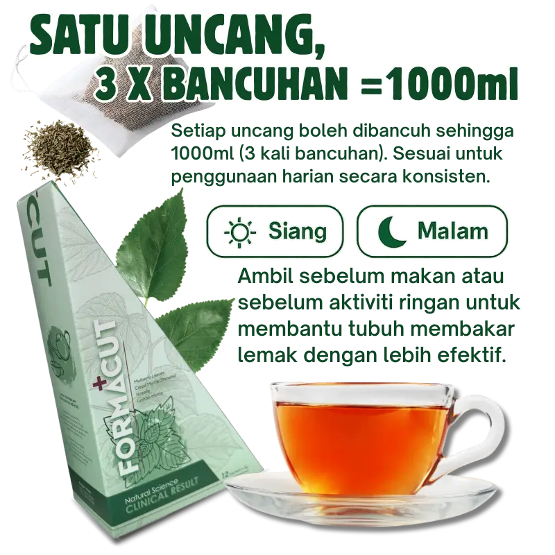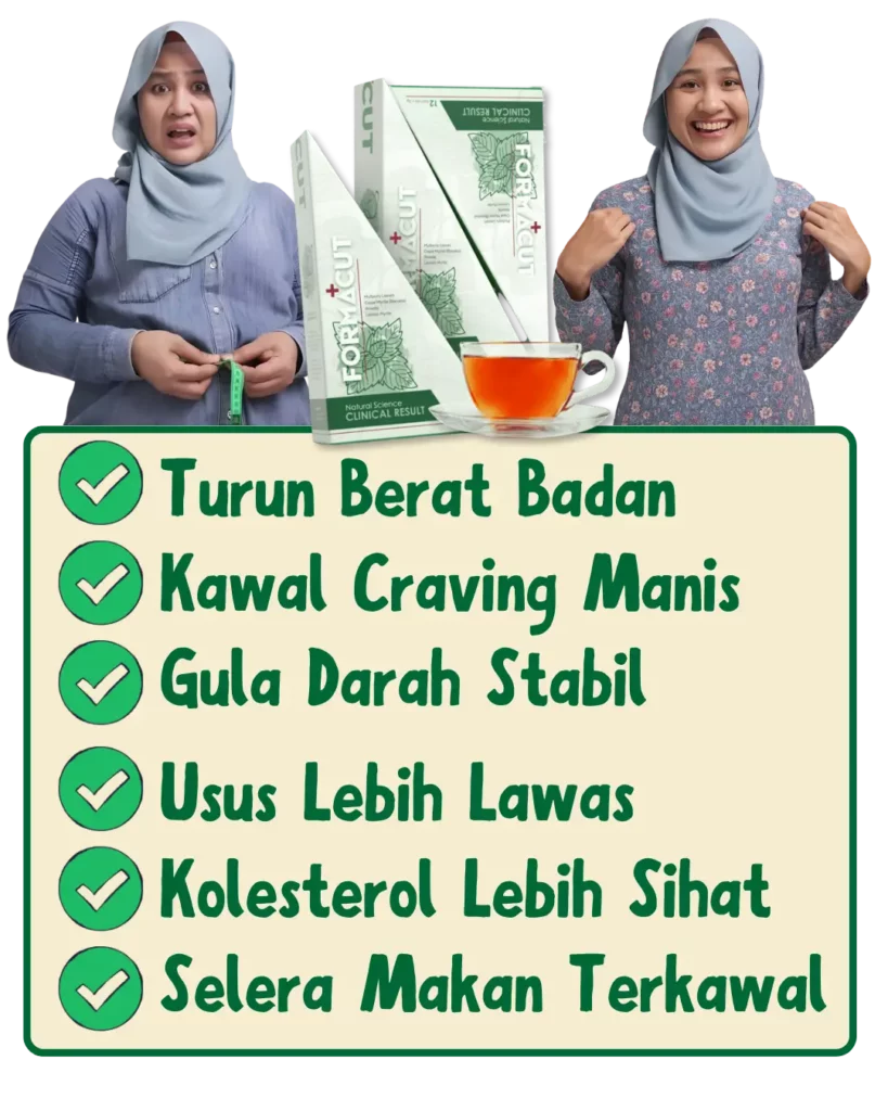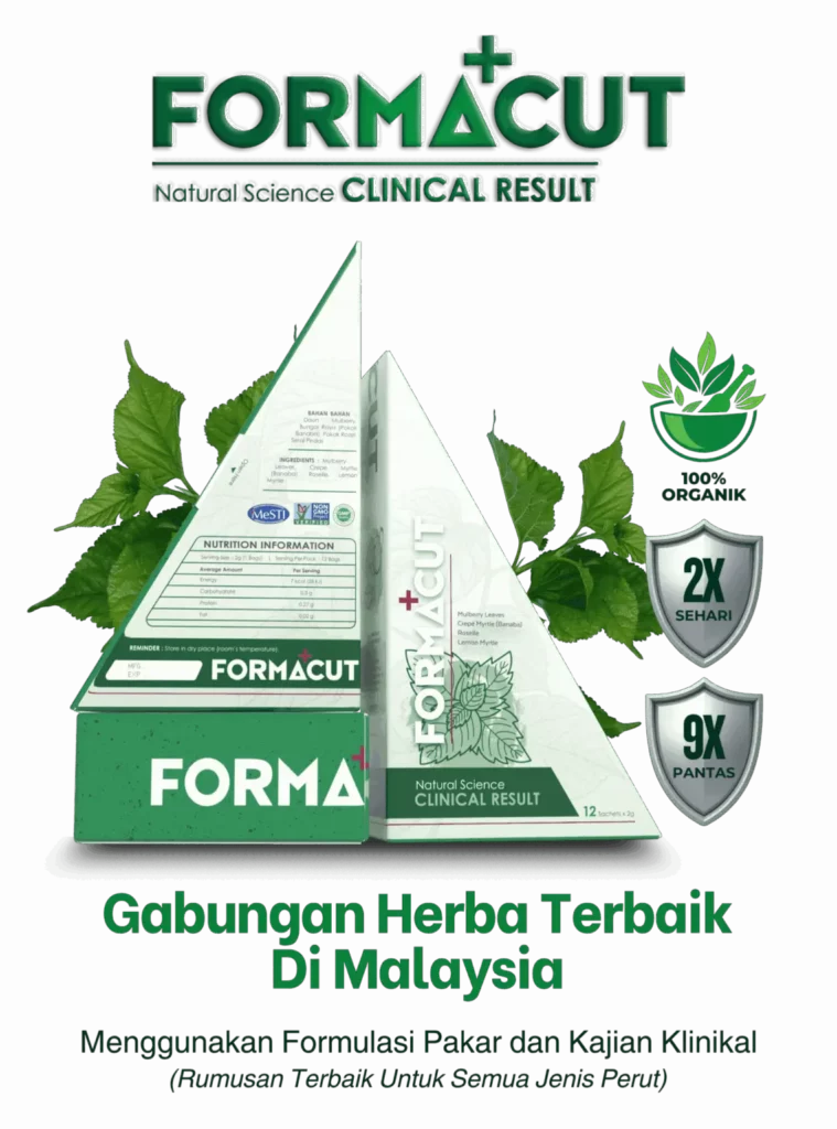FORMACUT+ Stabilkan gula & bersihkan sistem pencernaan → badan mula bakar lemak lama.