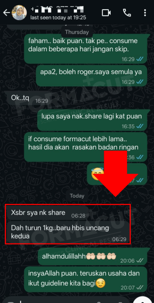 Tanda Awal FORMACUT® Mula Bekerja → Menuju Penurunan Berat