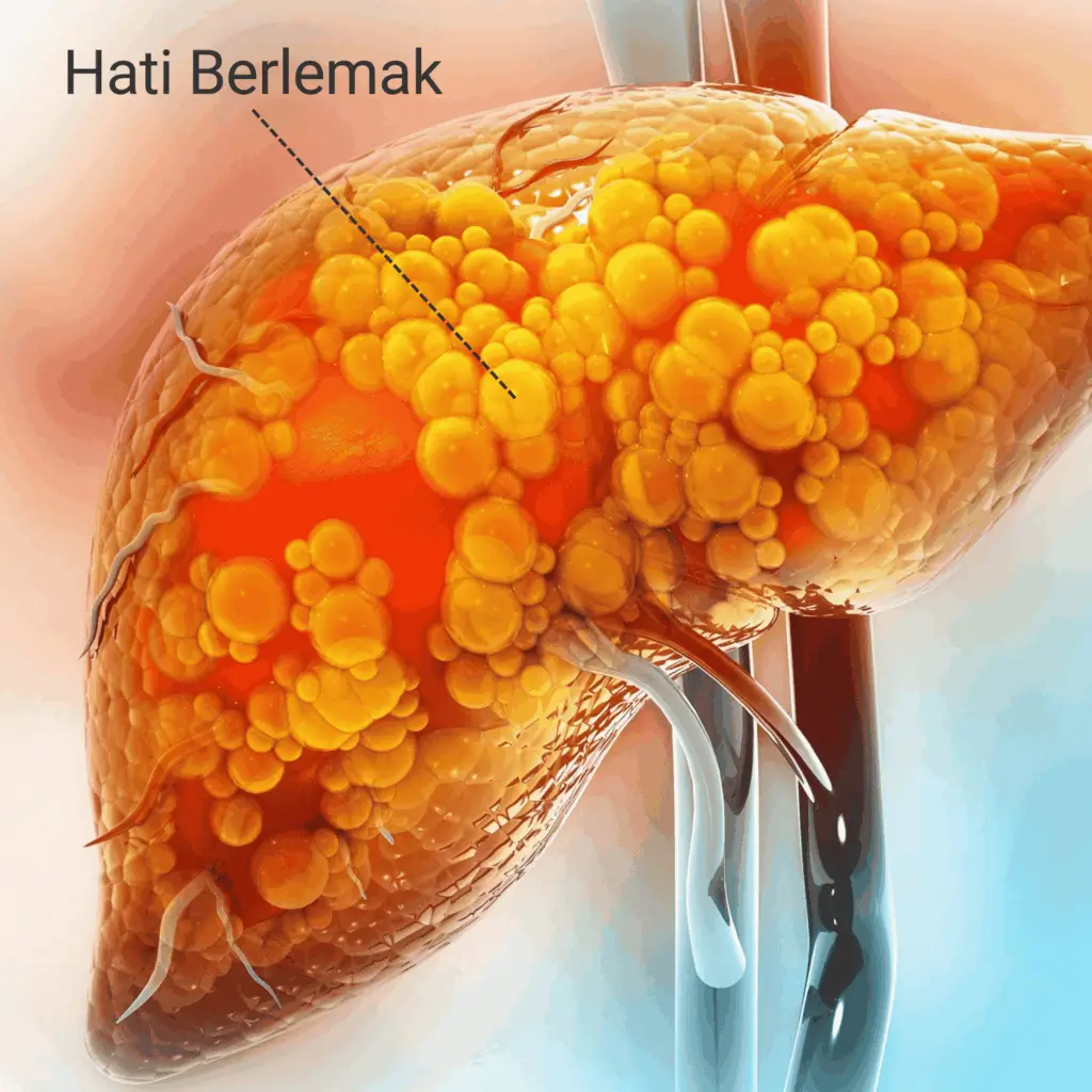 Lemak berkumpul di hati → hati bengkak → fungsi tapis toksin lemah.