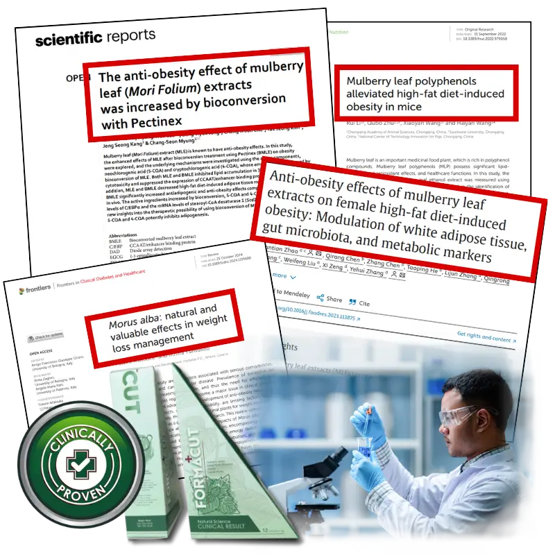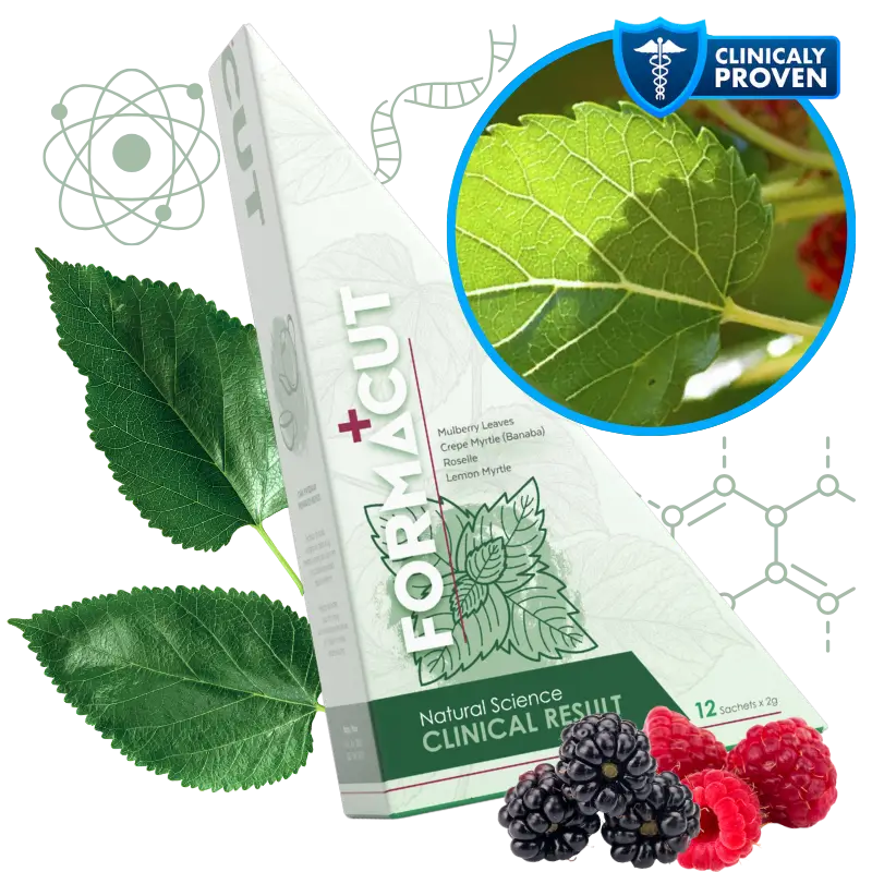 Daun Mulberry ialah bahan utama Formacut+ yang membantu turunkan berat dengan lebih stabil, selamat dan konsisten.