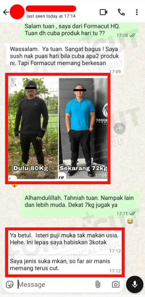 Dulu 80kg → Sekarang 72kg! Siap isteri pun puji makin muda 🔥 3 kotak Formacut+ memang ‘cut’ terus craving & air manis!”